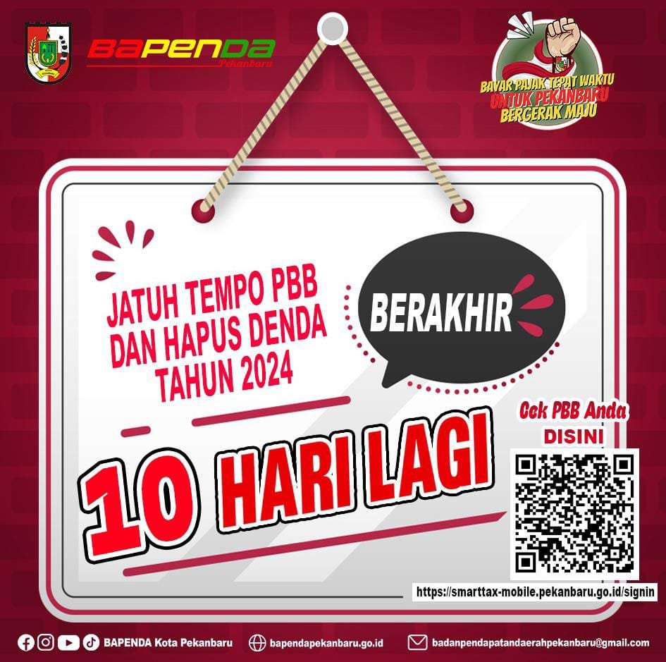 Pembayaran PBB tepat waktu bukan hanya soal menghindari denda. Tetapi, pembayaran tepat waktu juga merupakan bentuk ketaatan terhadap peraturan perpajakan serta kontribusi positif bagi pembangunan Pekanbaru.