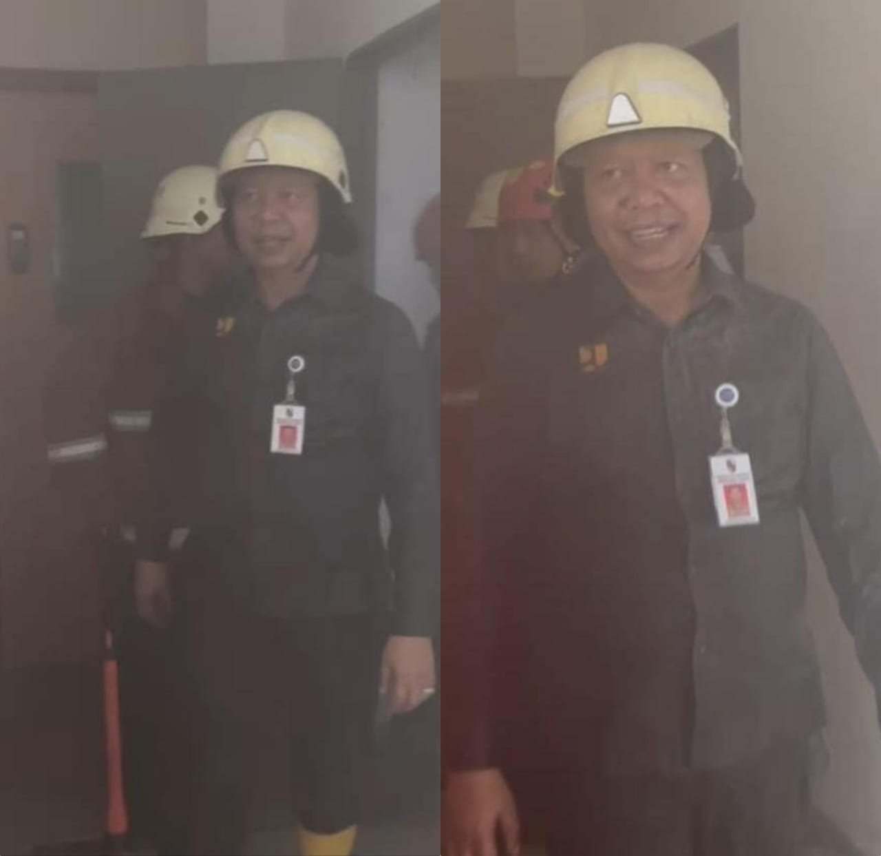 Selain itu, IPN sapaan akrab Indra Pomi yang terlihat masih memakai Seragam Dinas itu dilengkapi Helm Septi, dan sepatu boot langsung masuk ke Gedung B9 yang masih dipenuhi asap bekas Kebakaran, guna memastikan Api sudah berhasil di kendalikan.