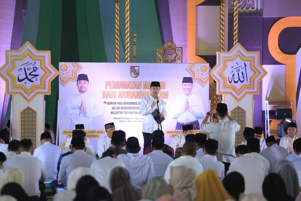 HL PEKANBARU – Penjabat (Pj) Wali Kota Pekanbaru, Risnandar Mahiwa menyampaikan pesan penting usai peringatan Maulid Nabi Muhammad SAW yang digelar di Masjid Agung Al Firdaus, Kompleks Perkantoran Tenayan Raya, Rabu (18/9/2024). Salah satu pesan itu adalah aparatur sipil negara (ASN) harus bekerja sesuai aturan.
