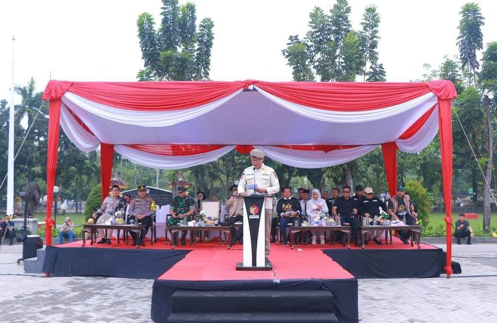 HL PEKANBARU -Sekretaris Daerah Kota (Sekdako) Pekanbaru Indra Pomi Nasution memimpin apel siaga yang ditaja oleh Badan Pengawas Pemilu (Bawaslu) Pekanbaru di halaman Mal Pelayanan Publik (MPP), Minggu (24/11/2024).