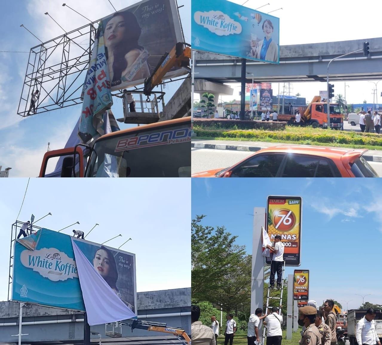 HL PEKANBARU – Badan Pendapatan Daerah (Bapenda) kota Pekanbaru bersama Personil Satuan Polisi Pamong Praja (Satpol PP) kota Pekanbaru kembali melakukan penertiban Reklame di sekitar Arengka Jalan Soekarno – Hatta, Rabu (23/10/2024).