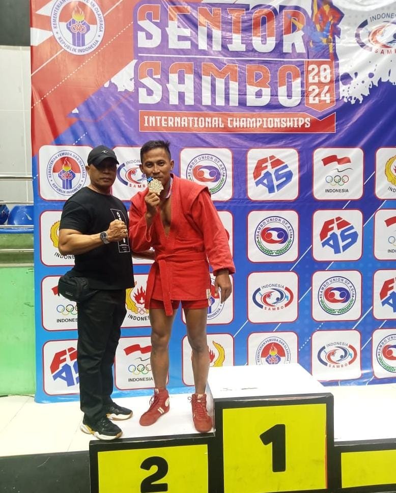 HL PEKANBARU – Atlet Sambo kota Pekanbaru Ahmad Satriyono yang berlaga di Senior Sambo Internasional Championship 2024 yanb diselenggarakan di kota Bandung Jawa Barat, berhasil mempersembahkan Medali Perak di Kelas Conbat 80 Kg.