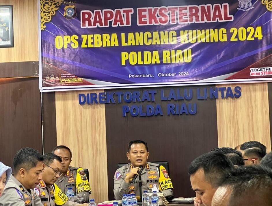 Rapat Koordinasi Eksternal Operasi Zebra Lancang Kuning-2024 yang berlangsung di Mako Ditlantas Polda Riau tersebut dihadiri langsung istansi terkait yang terdiri dari Denpom I/3 Pekanbaru, BPTD Kelas II Riau, PT. Hutama Karya, Dishub Provinsi Riau, Organda Riau, Kacab. Jasa Raharja Riau.