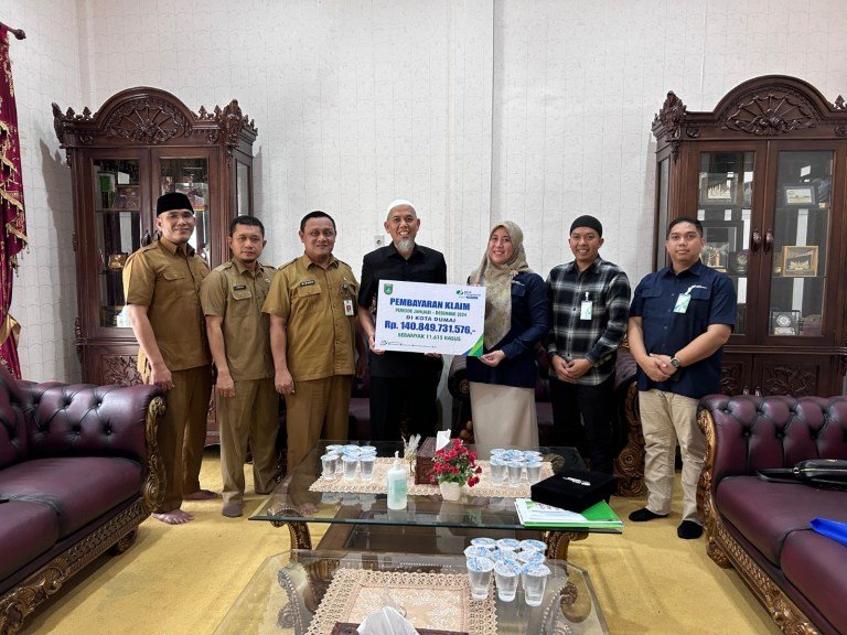 Di akhir pertemuan BPJS Ketenagakerjaan Dumai menyerahkan simbolis total klaim tahun 2024 dan juga plakat sebagai bentuk apresiasi atas kontribusi pemerintah kota Dumai dalam memastikan jaminan sosial ketenagakerjaan kepada seluruh pekerja kota Dumai.