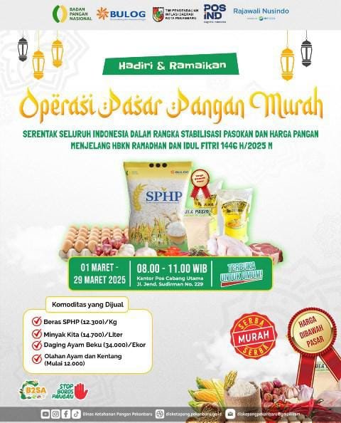 “Operasi Pasar Murah akan terus kita gelar selama Ramadhan dan menyambut Idul Fitri agar harga bahan pangan tidak mengalami kenaikan signifikan. Pasar murah ini kita koordinasikan bersama Bulog dan akan diselenggarakan oleh OPD di Pemko Pekanbaru seperti DKP Pekanbaru dan Disperindag Pekanbaru,” ujarnya.