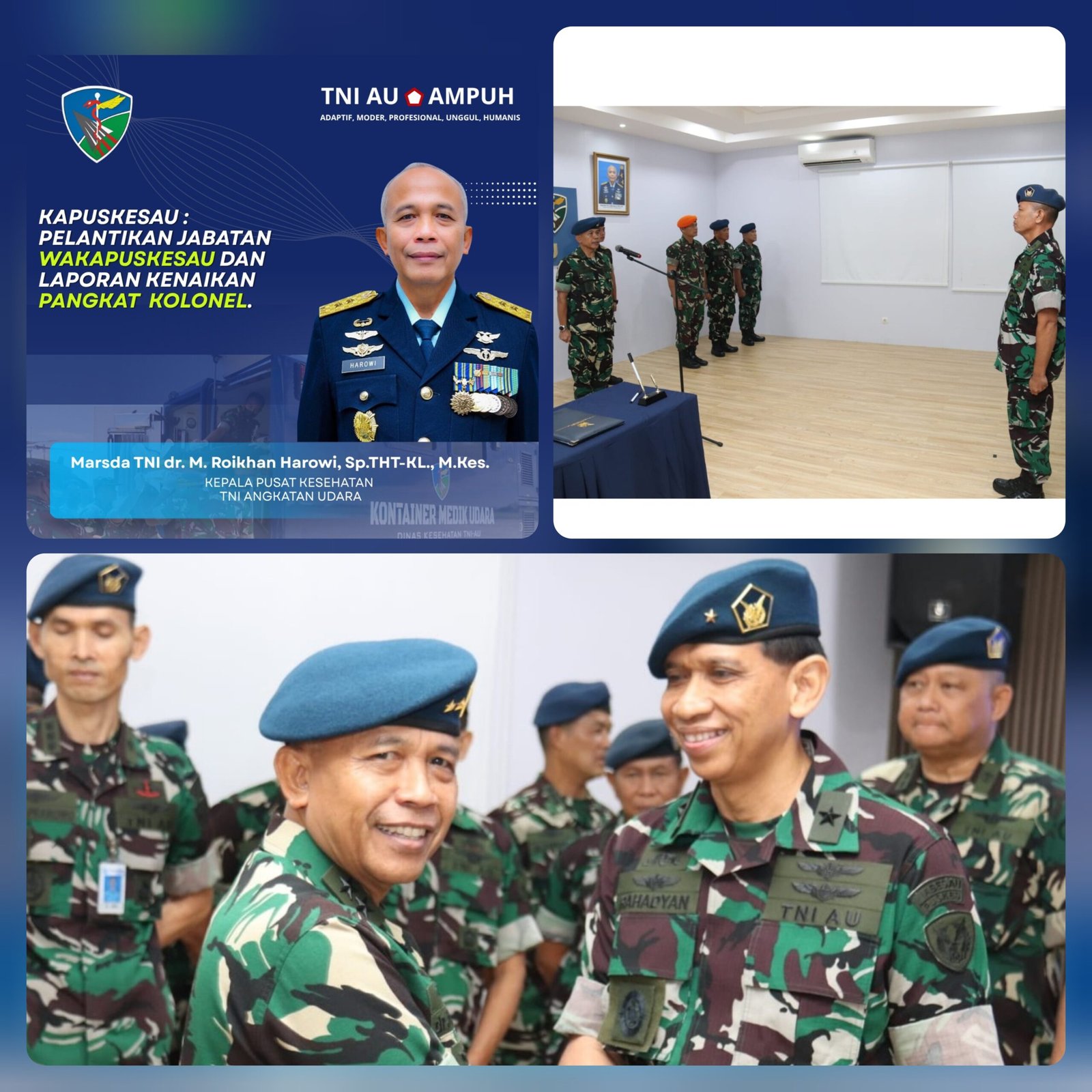 Jakarta, HL– Dalam sebuah upacara yang berlangsung khidmat, Kepala Pusat Kesehatan TNI Angkatan Udara (Kapuskesau) Marsekal Muda TNI M. Roikhan Harowi, Sp.THT-KL., M.Kes, secara resmi melantik Marsekal Pertama TNI dr. Adhantoro Rahadyan, Sp.JP., F.I.H.A (K) sebagai Wakapuskesau. Acara ini digelar pada hari Senin, 20 Oktober 2025 di Markas Pusat Kesehatan TNI AU.