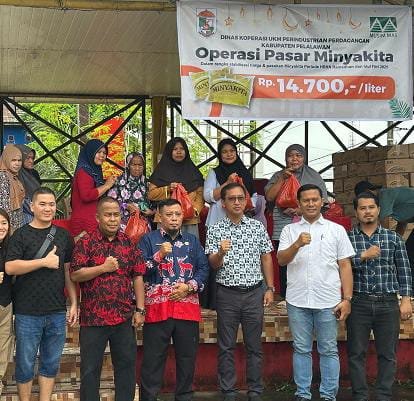 HL PELALAWAN – PT Musim Mas, salah satu perusahaan besar di Indonesia, menggandeng distributor dan pengecer untuk menjual minyak goreng MinyaKita dalam rangka pasar murah yang digelar oleh Pemerintah Kabupaten (Pemkab) Pelalawan melalui Dinas Koperasi, Usaha Mikro Menangah, Perindustrian dan Perdagangan (Diskop – UKM Perindag) Pelalawan.