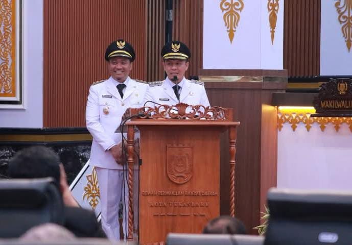HL PEKANBARU – Walikota Pekanbaru H Agung Nugroho SE MM dan Wakil Walikota H Markarius Anwar ST M.Arch, menyampaikan pidato perdana dalam rapat paripurna di gedung DPRD setempat, Senin (3/3/2025) sore.