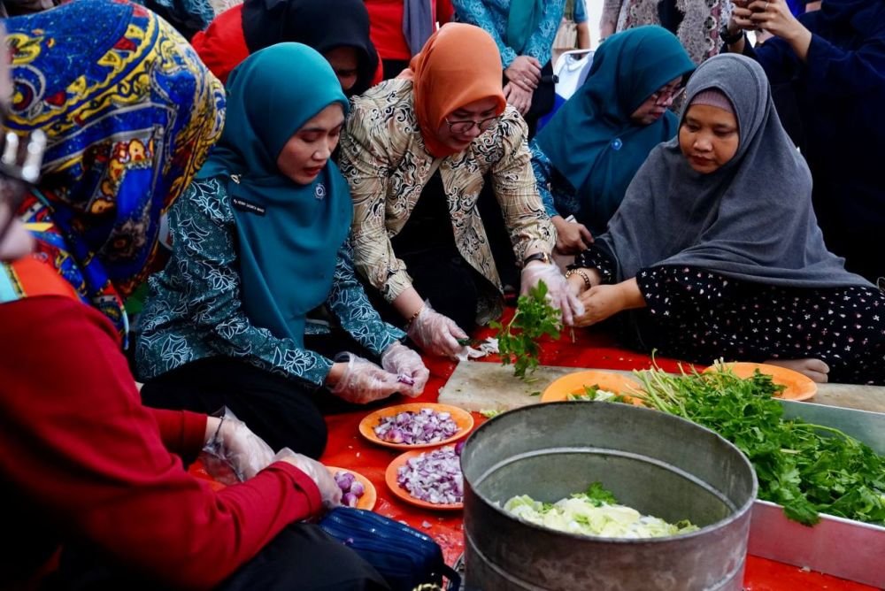 HL RIAU – Ketua Tim Penggerak Pemberdayaan dan Kesejahteraan Keluarga (TP-PKK) Provinsi Riau, Henny Sasmita Wahid, meninjau langsung dapur umum bagi korban banjir di Kantor Dinas Sosial, Kota Pekanbaru, Provinsi Riau pada Sabtu (8/3/2025).